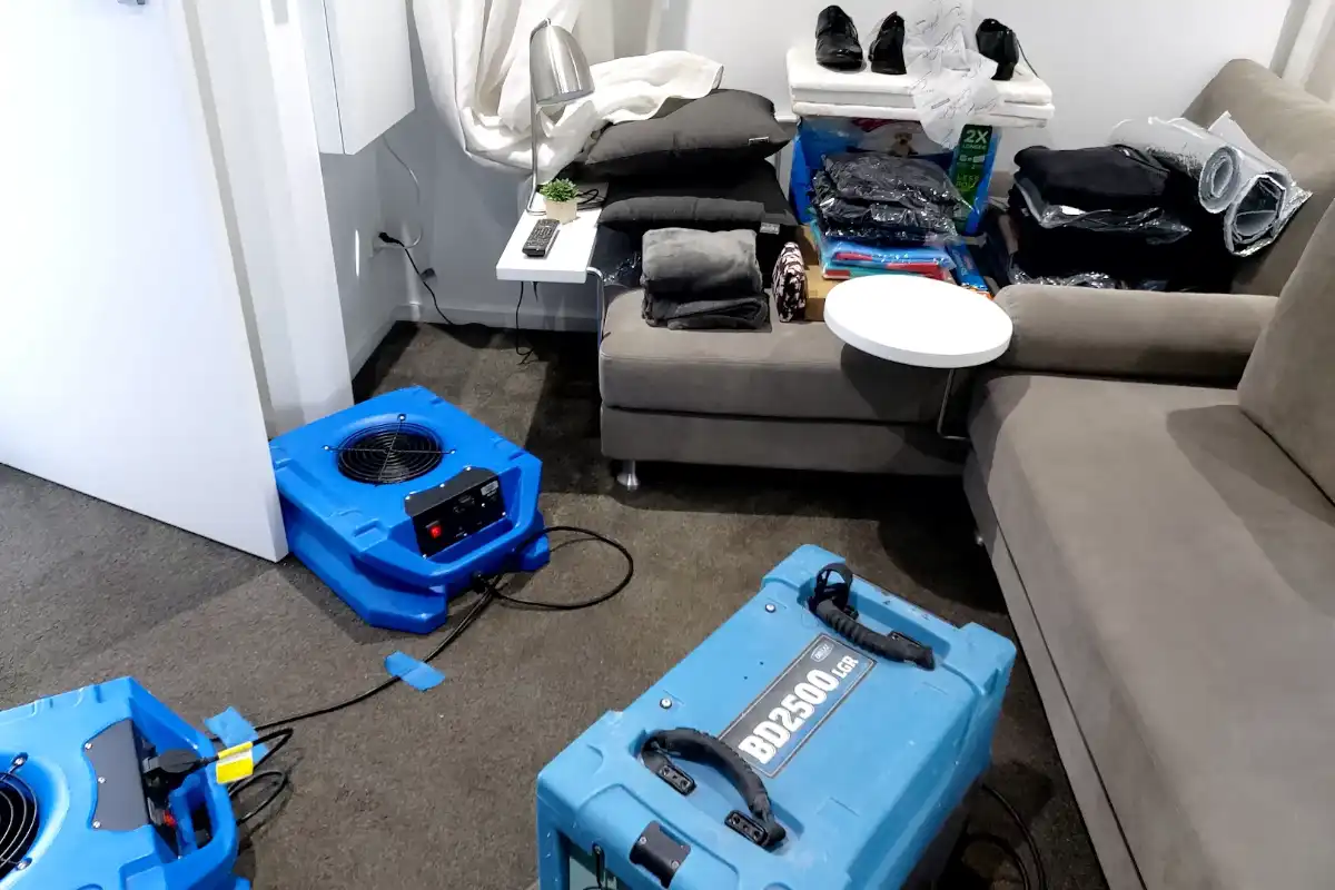 Air movers and dehumidifiers are installed to eliminate moisture fast — with ongoing monitoring until fully dry.